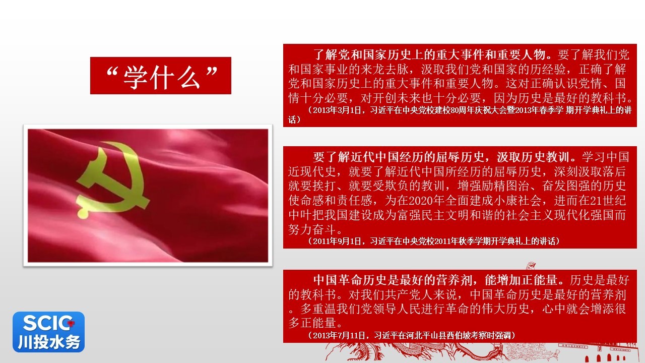 - 川投水務(wù)集團(tuán)黨委組織召開 新民主主義革命時(shí)期、社會(huì)主義革命建設(shè)時(shí)期 中心組(擴(kuò)大)專題學(xué)習(xí)會(huì)